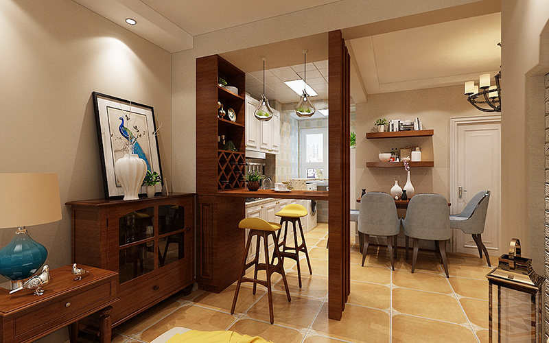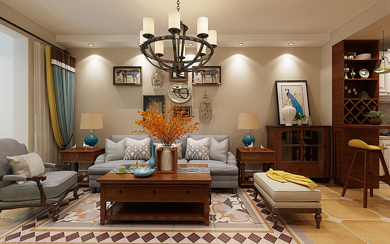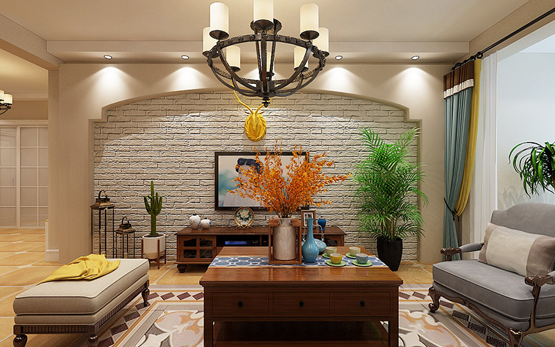 設想理念:本案界說為美式故鄉氣概,屬于天然氣概的一支,提倡“回歸天然”,故鄉氣概在美學上推重天然、連系天然,在室內情況中力圖表現落拓、興奮、天然的故鄉糊口情味,締造天然、儉樸、文雅的氛圍。