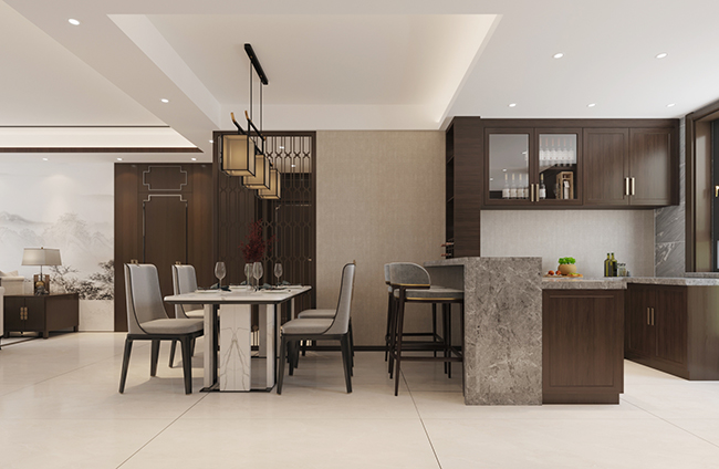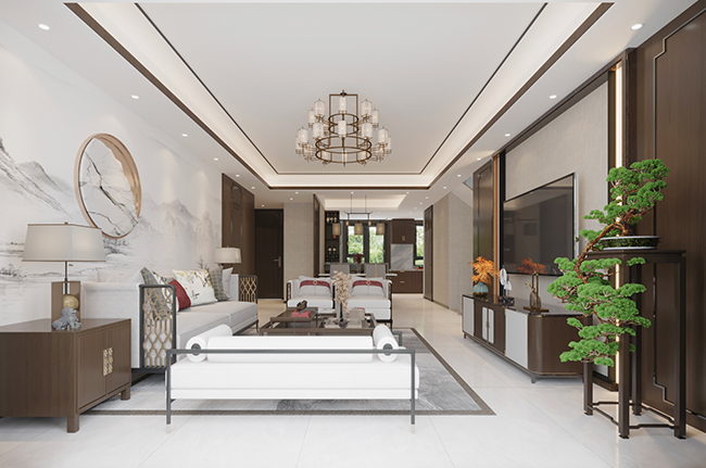 小區:吳中桃花源 氣概:新中式氣概 面積:240㎡ 戶型:三居室