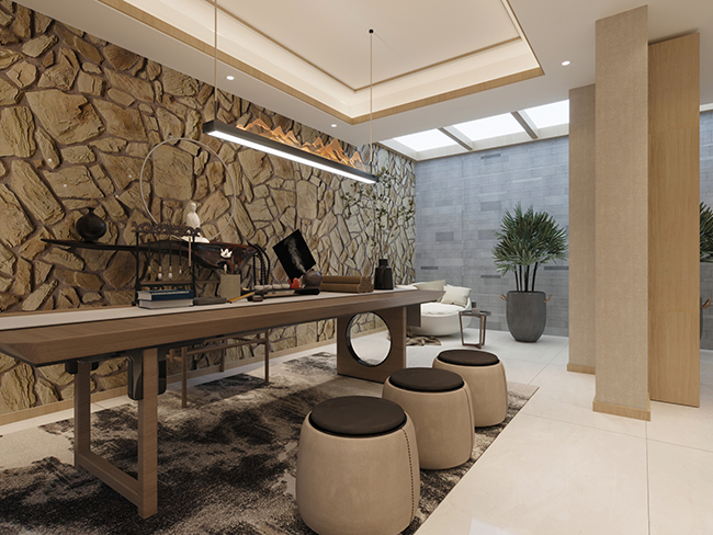 設想理念:中國傳統藝術與古代社會的審美彼此感化,讓本來的呆板更具古代的精練和時髦感。根據業主請求,增添一些粗狂的天然元素,回到原始的天然感受。